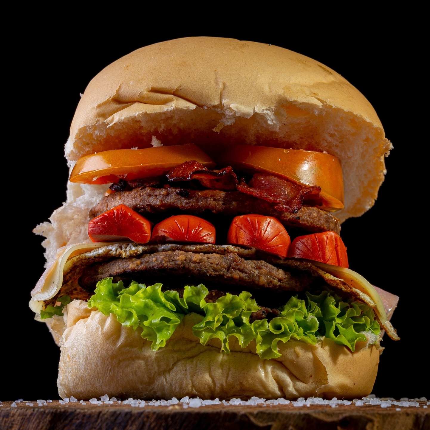 Suculento hambuger com bacon premium e salada
